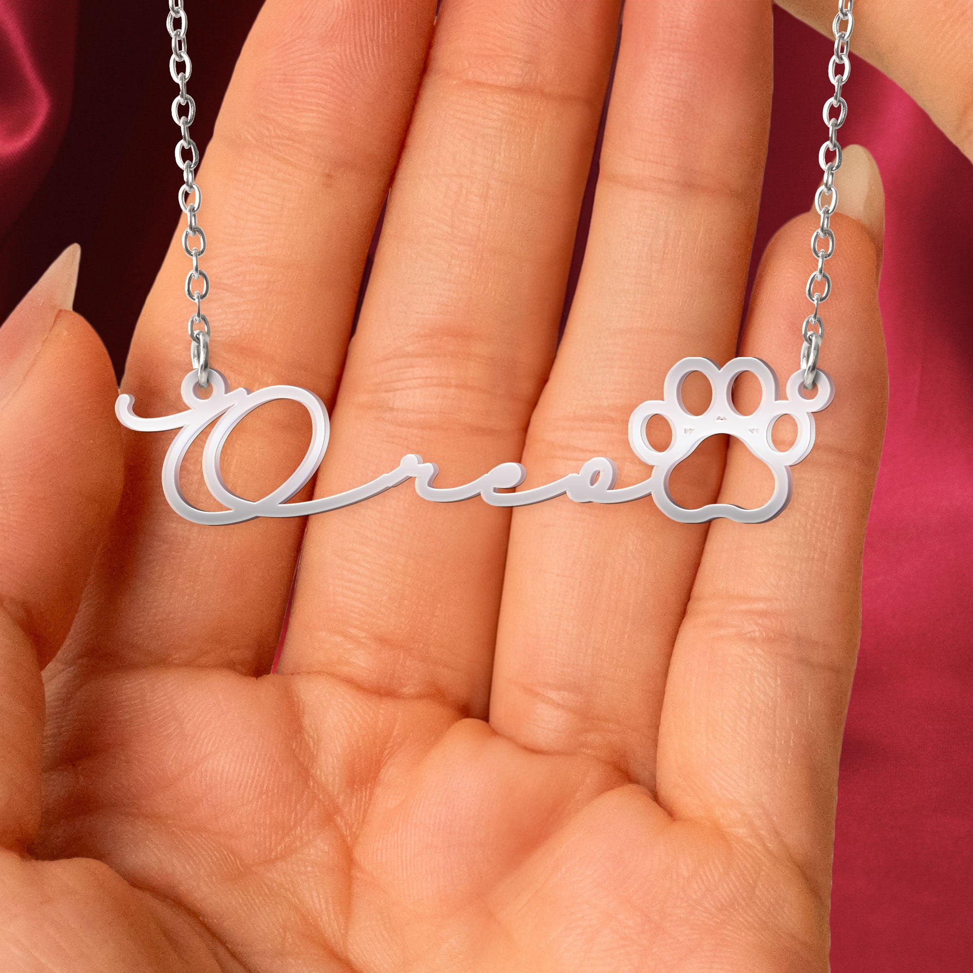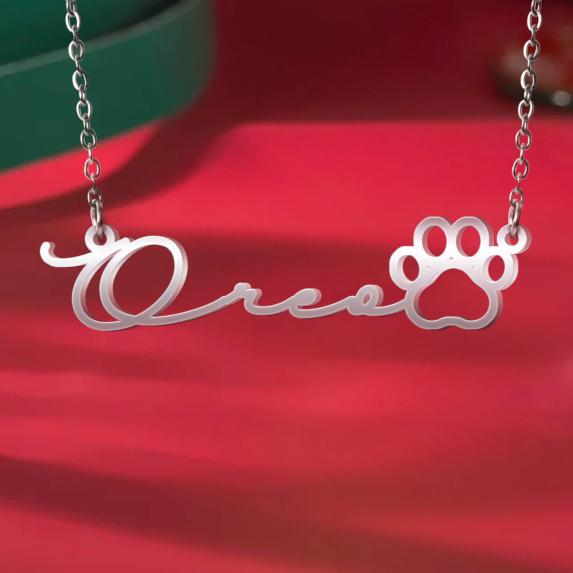 This custom name necklace is a heartfelt tribute for dog lovers, especially those who have experienced the loss of their beloved furry friends. Crafted with care and personalized with your dog's name or a special message, this necklace serves as a beautiful reminder of the unconditional love and joy that pets bring into our lives. Made from high-quality materials, the necklace features a delicate design that’s perfect for everyday wear, allowing you to keep the memory of your dog close to your heart. Whether as a thoughtful gift for yourself or a loved one, this piece captures the spirit of your beloved companion in a meaningful and lasting way. It’s a truly sentimental keepsake that honors the bond between humans and their pets. A perfect gift for those who cherish their four-legged family members, whether in life or in memory.