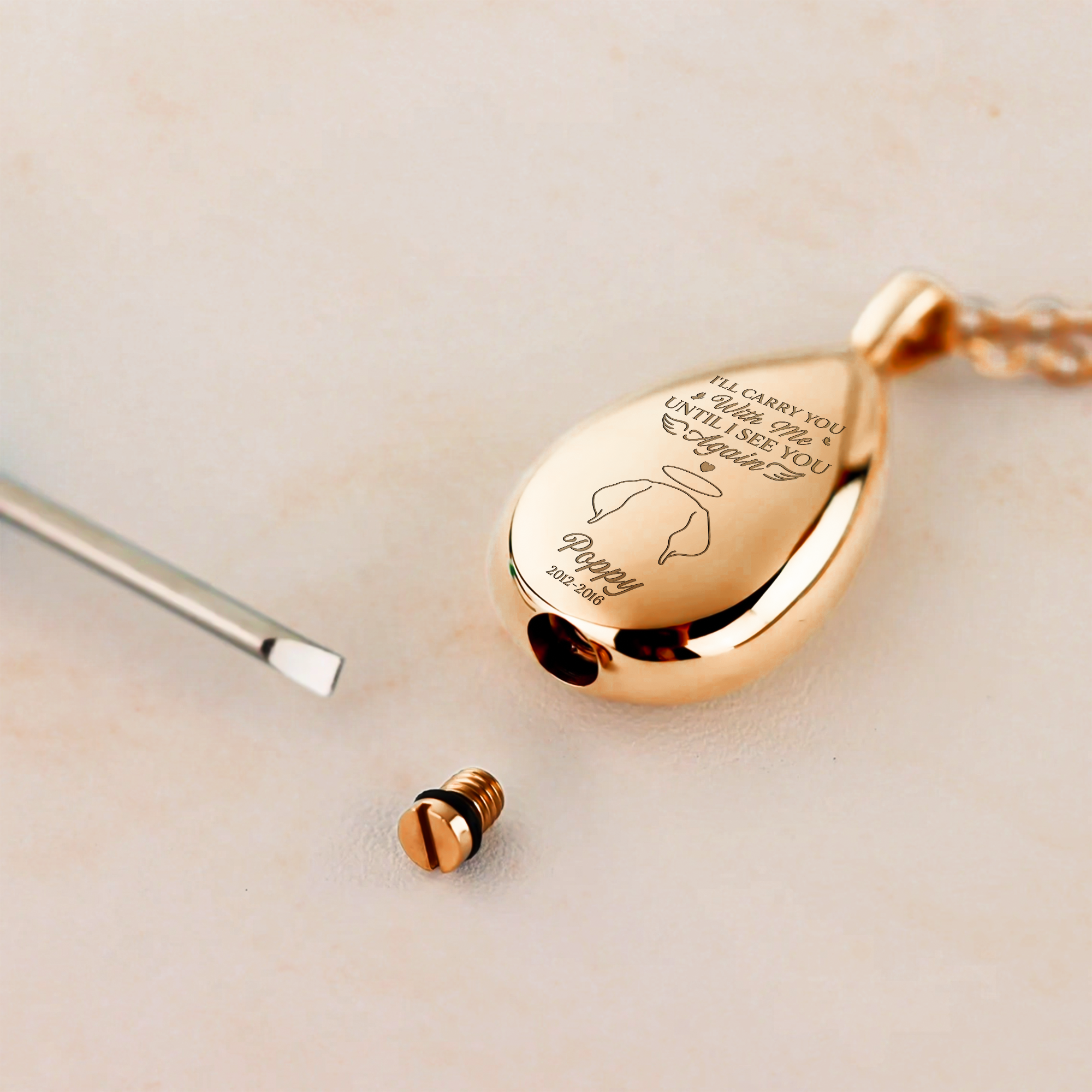 Express your deepest sentiments with this thoughtful keepsake necklace, offering a meaningful way to celebrate the life and enduring spirit of your beloved pet. Keep their memory alive and close to your heart, ensuring they are unforgettable and forever cherished.