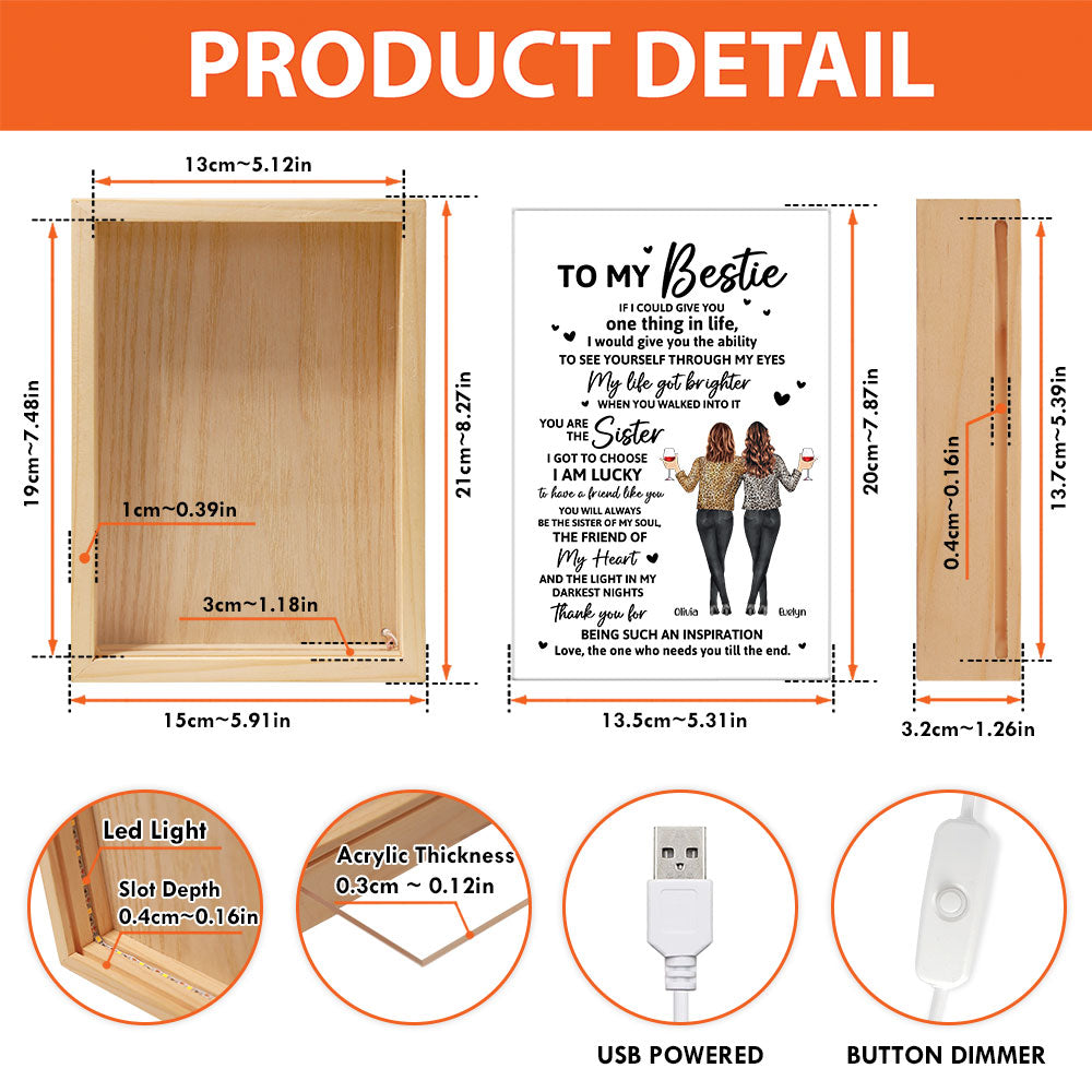 Our personalized frame light box is a perfect gift for besties, soul sisters, or your best friends. It is suitable for any occasion, such as Christmas, birthday, New Year, or just because. It is also a great decoration that will add sparkle and charm to their home or office. You can place it on your desk, shelf, or dashboard, and enjoy its beauty and meaning.