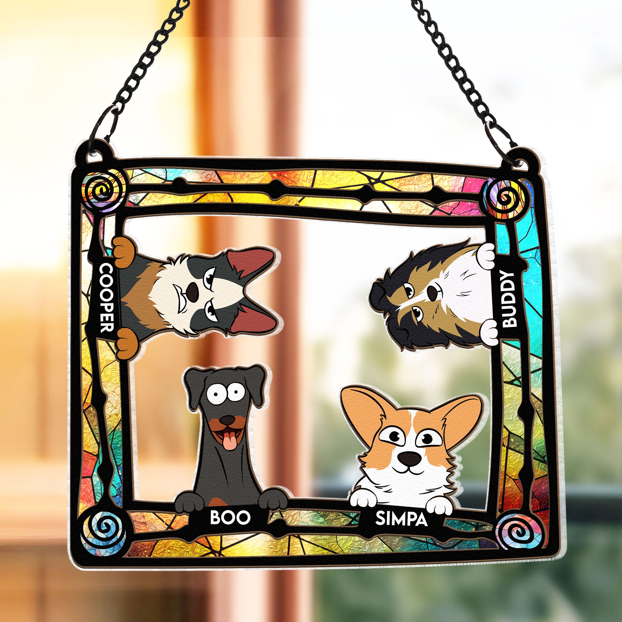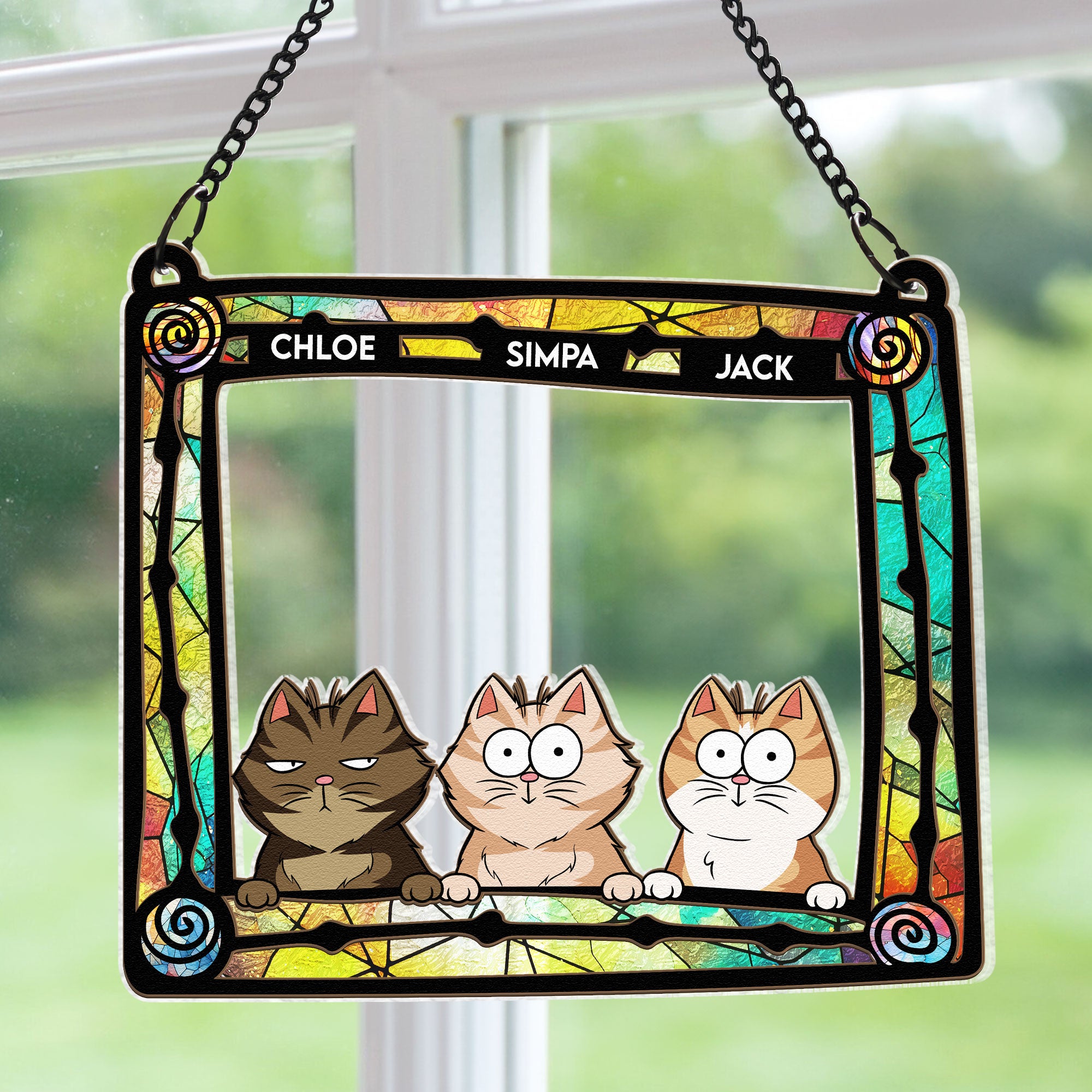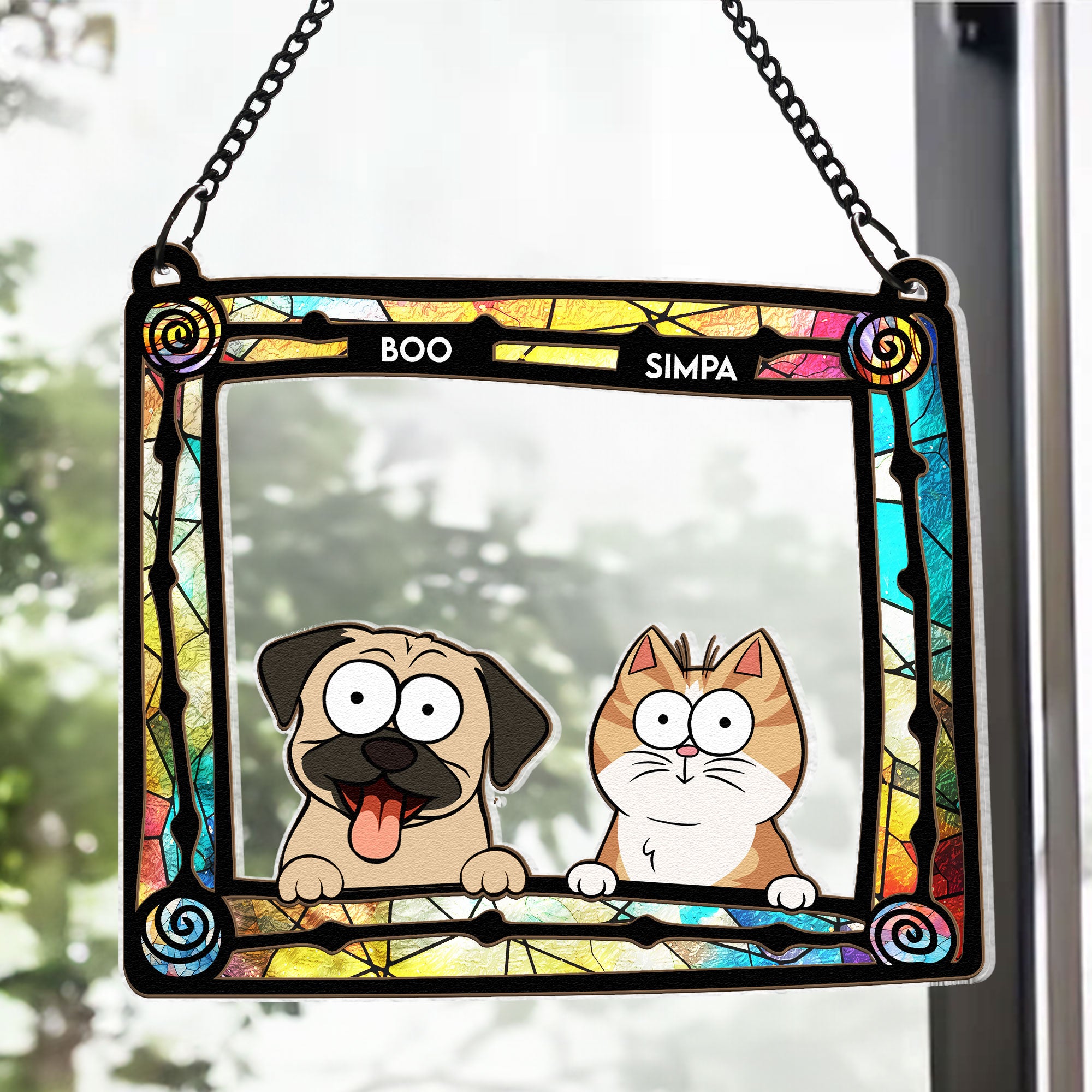 Peeking Pet On Window Frame - Personalized Window Hanging Suncatcher Ornament