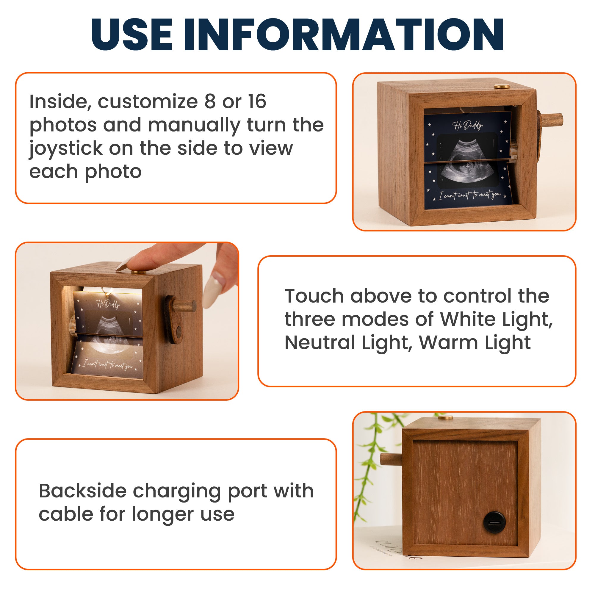 + Smooth-Turn Hand Crank: Manually flip through your photo reel with a vintage-style hand crank, offering a satisfying, tactile experience.