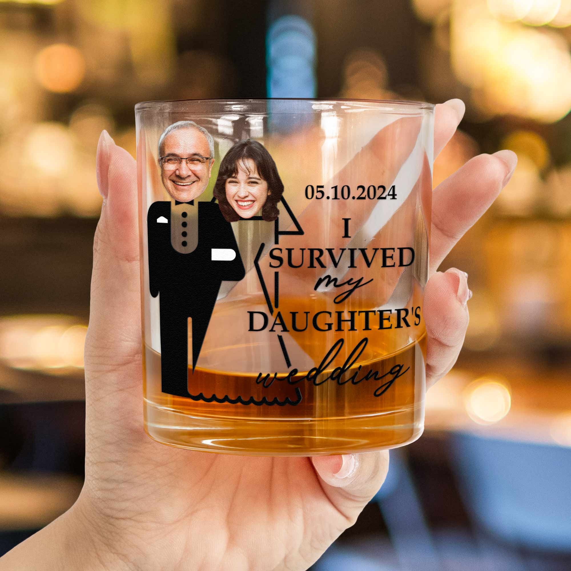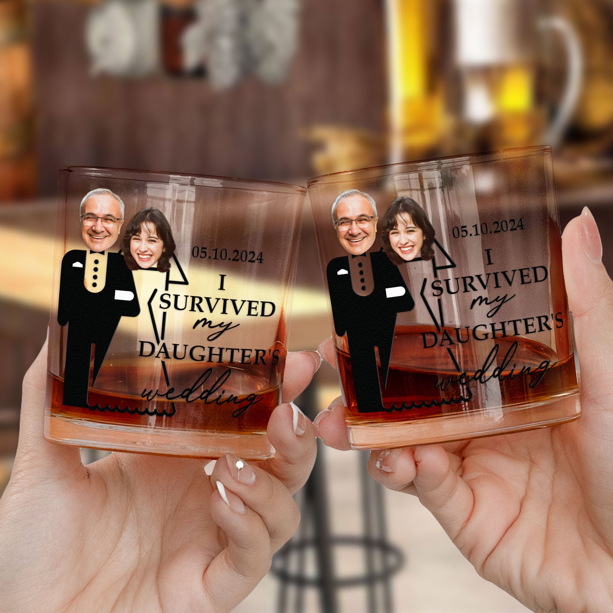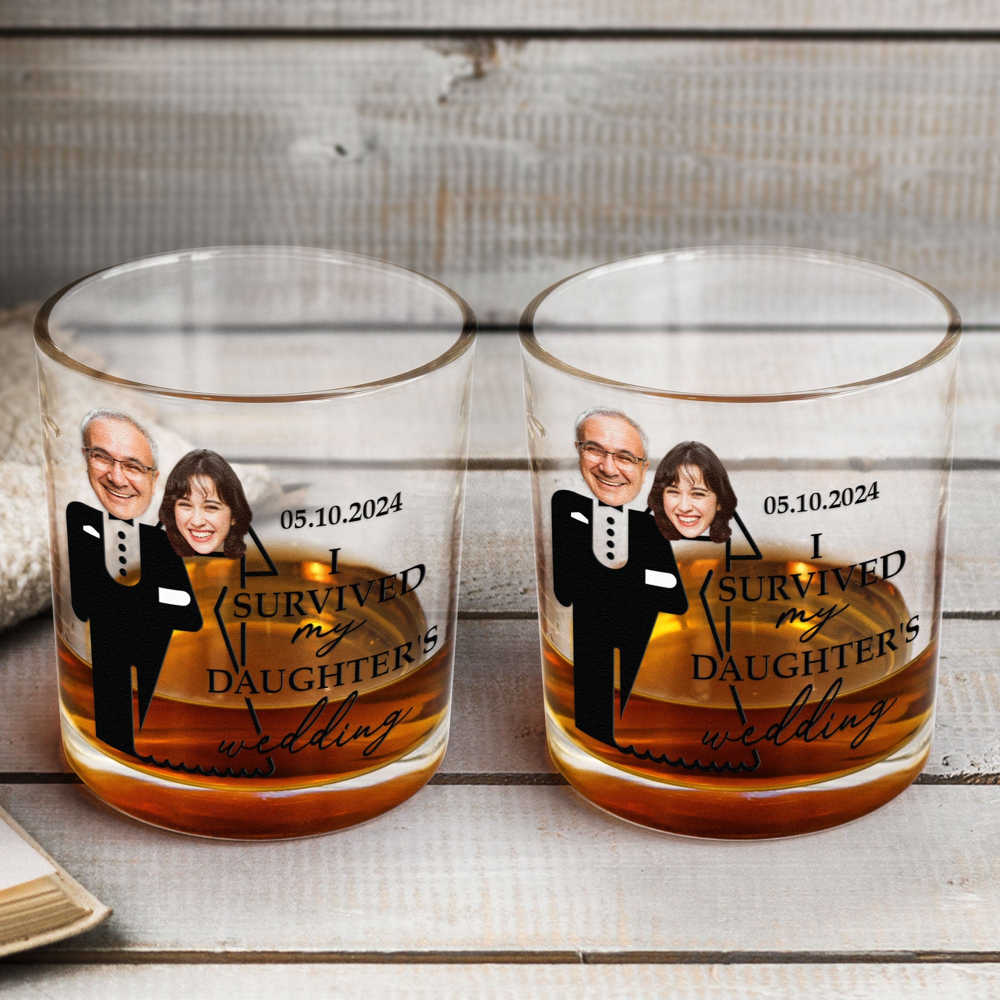 Wedding Gift For Dad I Survived Daughter's Wedding - Personalized Photo Whiskey Glass