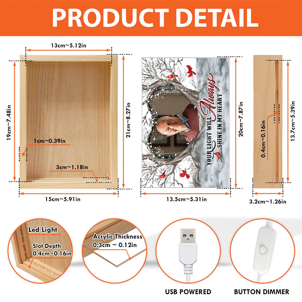 Your Light Will Always Shine In My Heart - Personalized Photo Frame Light Box