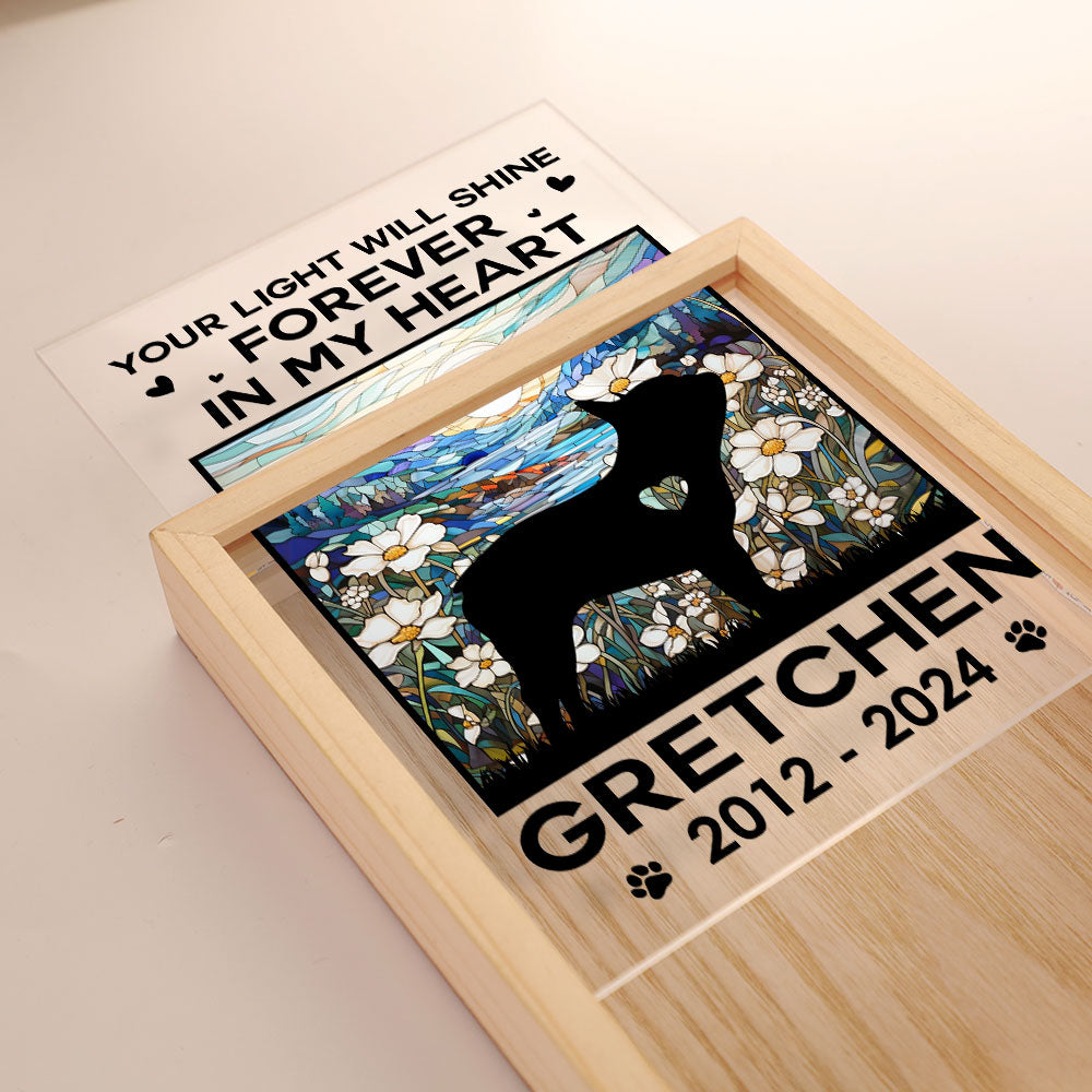 Personalized memorial frame light boxes are a beautiful way to commemorate your loved ones who have passed away and keep them close to your heart. These night lights are crafted with care and can be personalized with your lovely pet. Whether you put them on your table, or your desk, these photo lights will remind you of the happy times you shared with your loved one and the joy they brought to your life. Personalized memorial led lights are more than just night lights, they are expressions of your love and grief.